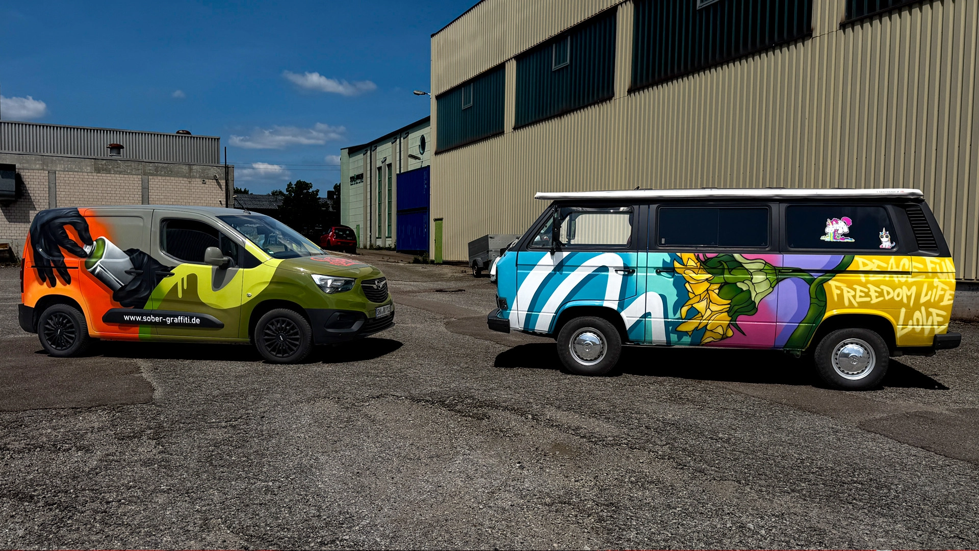 Neben einem VW T3 Bulli, den ich für eine Kundin gestaltet habe, habe ich mir meinen Traum erfüllt und mein eigenes Auto besprüht.